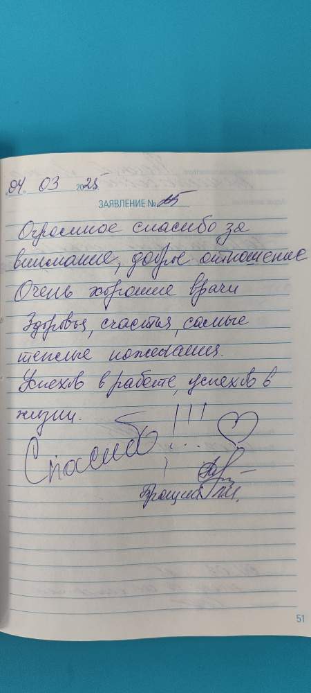 Огромное спасибо за внимание, доброе отношение . Очень хорошие врачи .