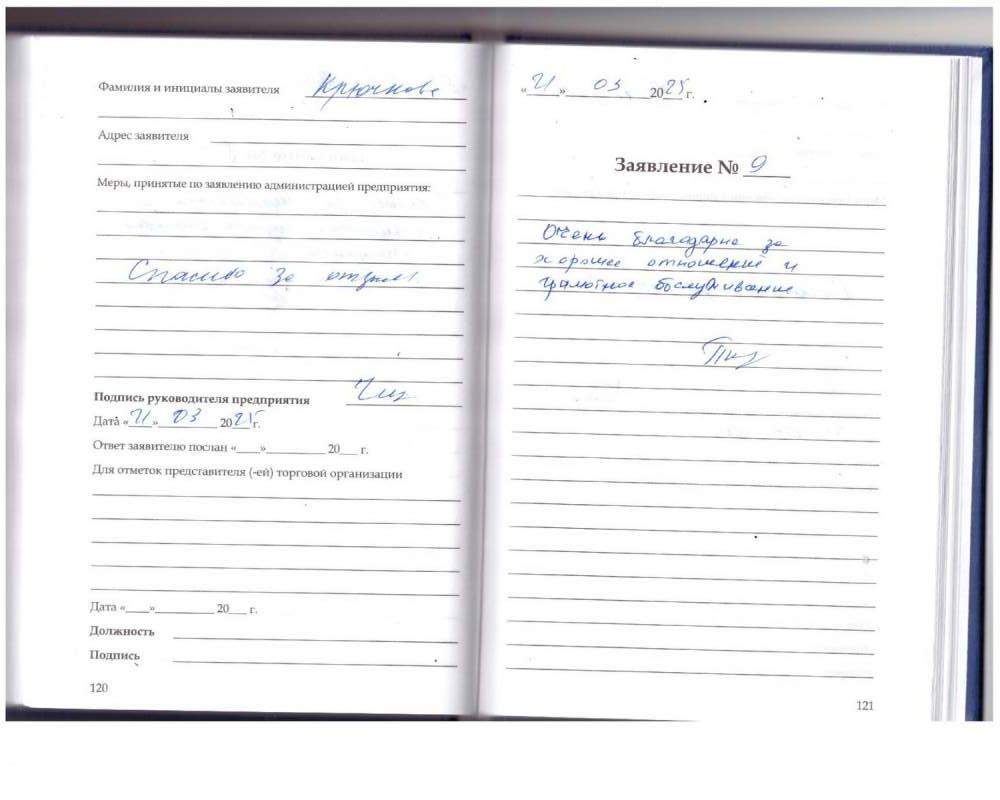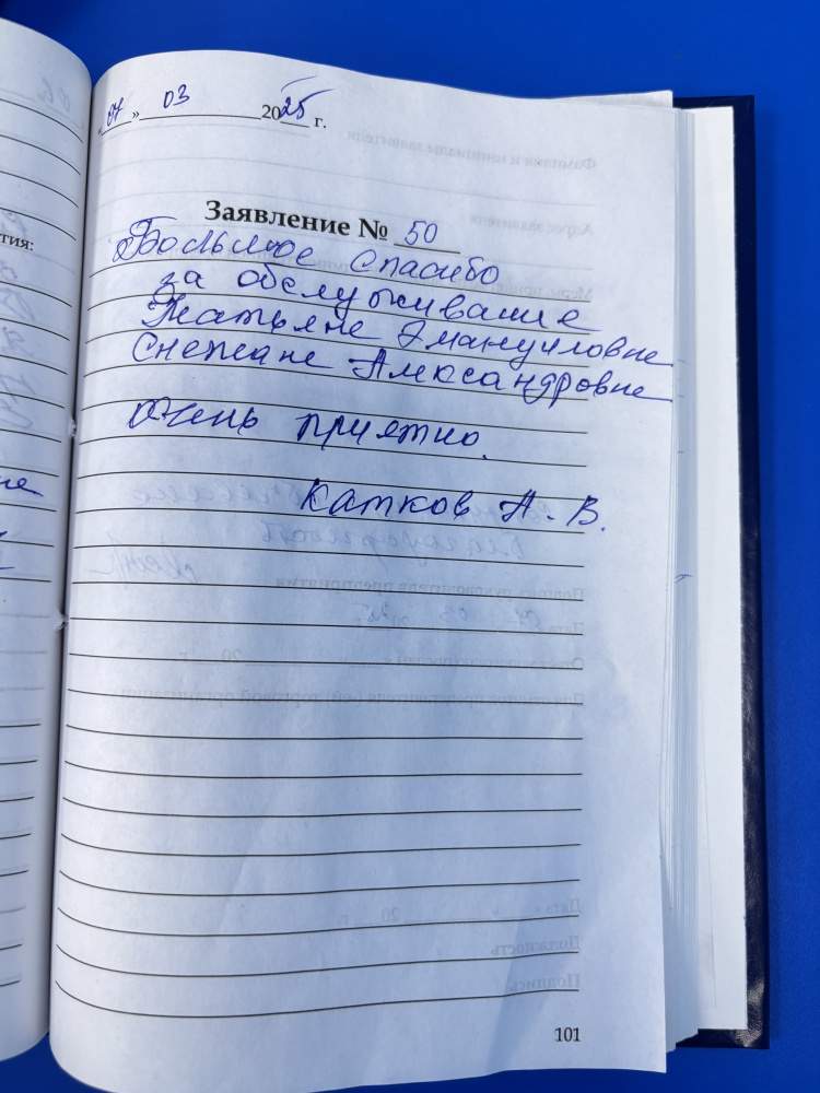 Большое спасибо за обслуживание Татьяне Эмануиловне и Снежане Александровне. Очень приятно.
