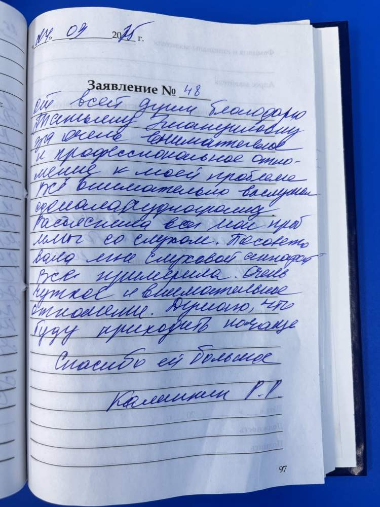 От всей души благодарю Татьяну Эмануиловну за очень внимательное и профессиональное отношение к моей проблеме. Всё внимательно выслушала, сделала аудиограмму. Разъяснила все мои проблемы со слухом, посоветовала мне слуховой аппарат, всё примерила. Очень четкое и внимательное отношение. Думаю, что буду приходить почаще. Спасибо ей большое.