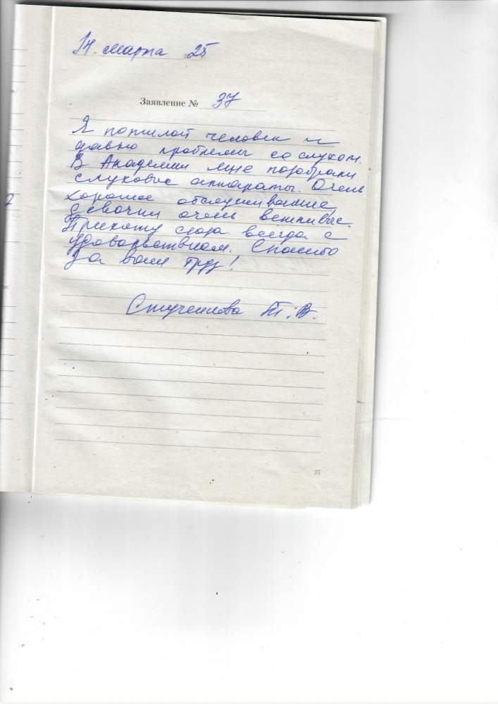 Я пожилой человек и давно проблемы со слухом. В Академии мне подобрали слуховые аппараты. Очень хорошее обслуживание девочки очень вежливые. Прихожу сюда всегда с удовольствием. Спасибо, за Ваш труд!