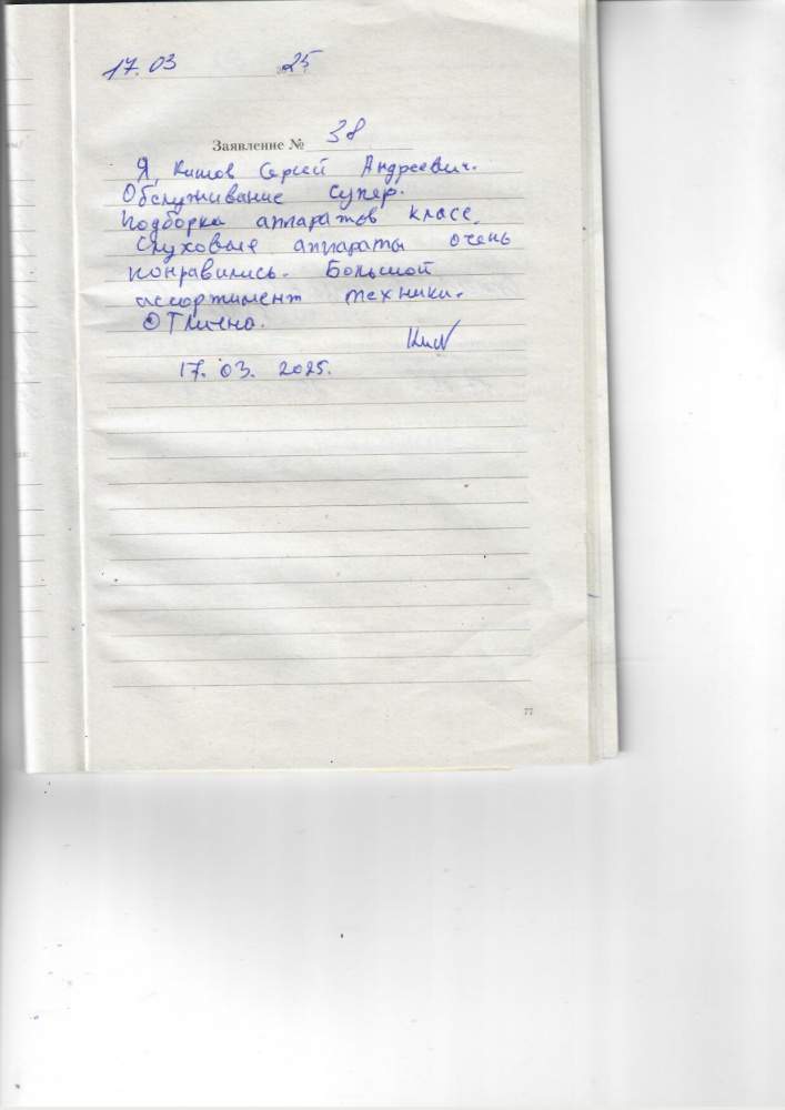 Я,Кимов Сергей Андреевич . Обслуживание супер. Подборка аппаратов класс, Слуховые аппараты очень понравилось. Большой ассортимент техники. Отлично.