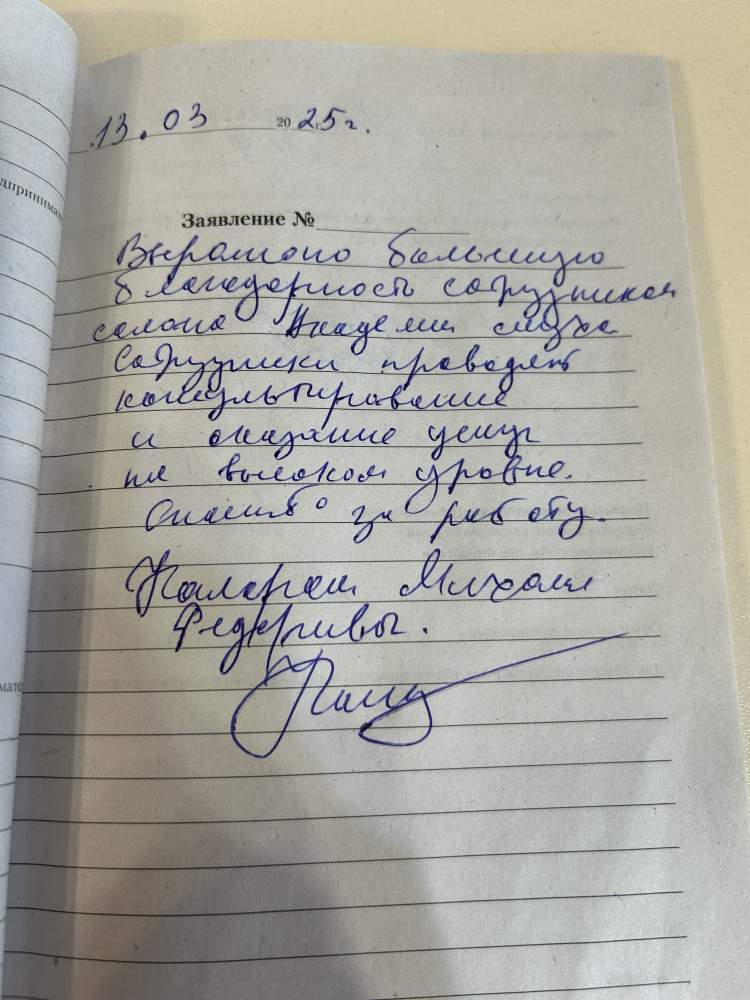Выражаю большую благодарность сотрудникам Академии слуха. Сотрудники проводят консультирование и оказание услуг на высоком уровне.Спасибо за работу.