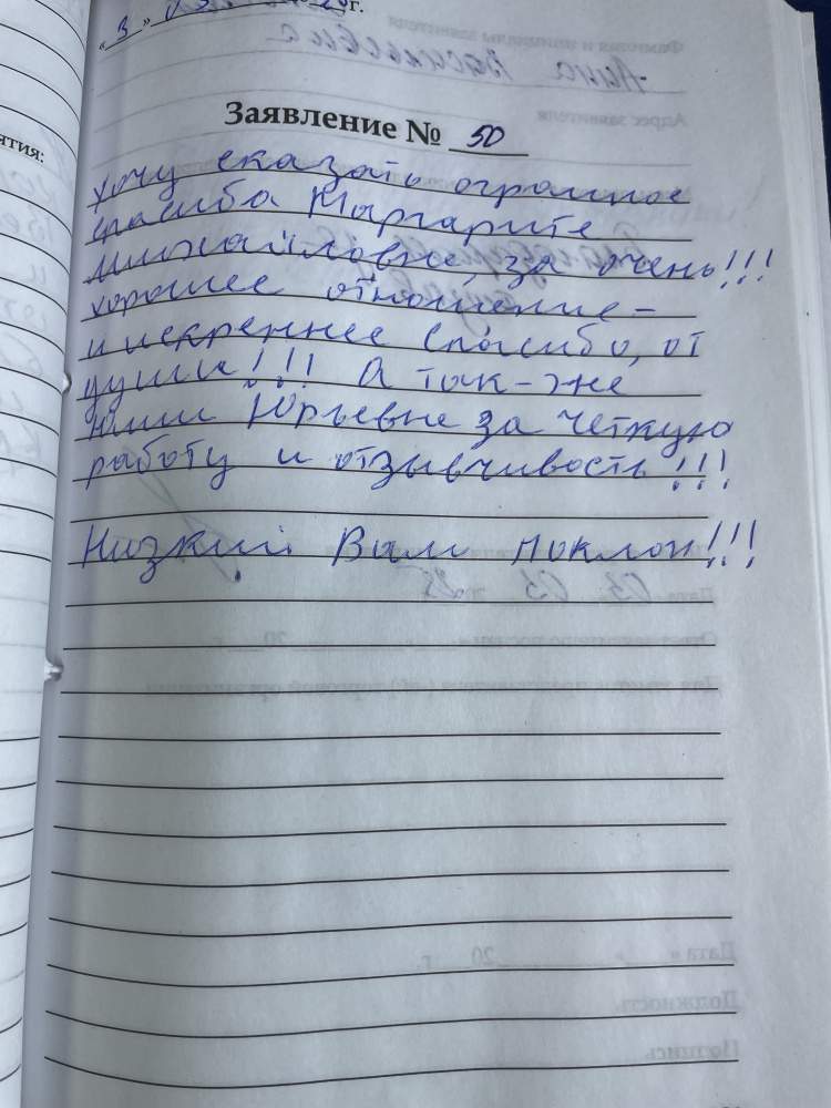 Хочу сказать огромное спасибо Маргарите Михайловне за очень хорошее отношение и искреннее спасибо от души!!!. А так же Юлии Юрьевне за четкую работу и отзывчивость.