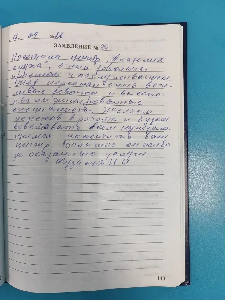 Благодарю персонал за отличное отношение.                                                                               13.04.26 г.       подпись