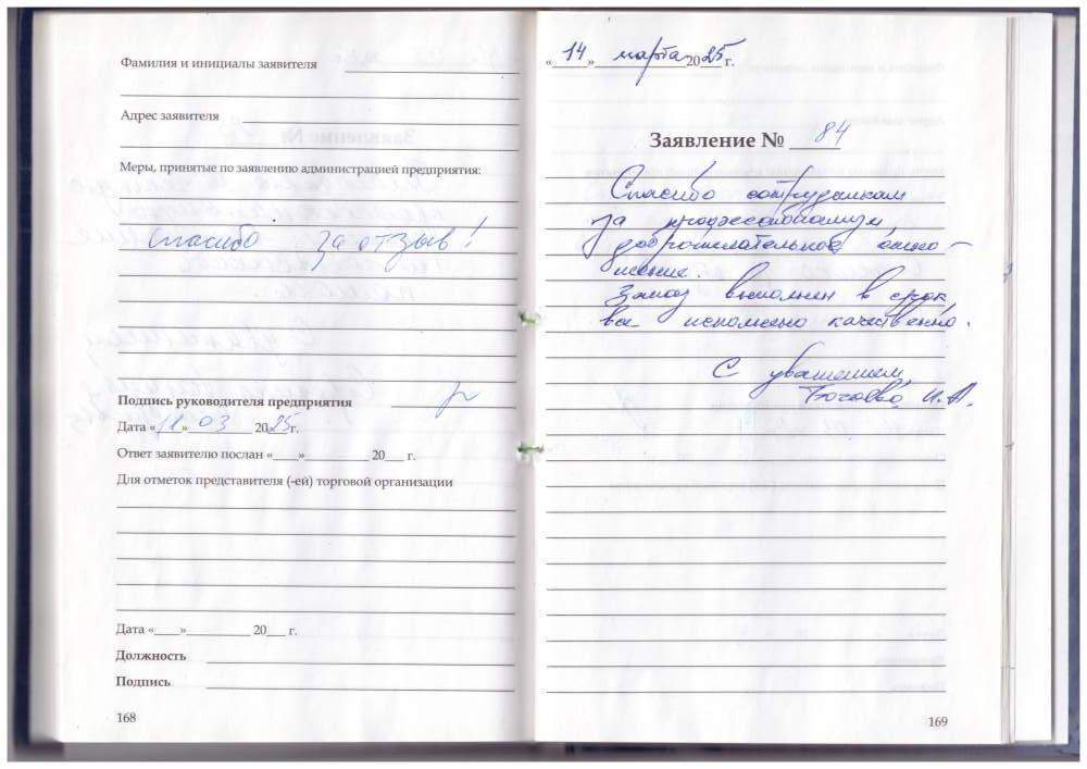 Спасибо сотрудникам за профессионализм, доброжелательное отношение. Заказ выполнен в срок. Все исполнено качественно. С уважением Бочаева И.А.