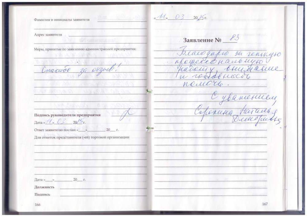 Благодарю за четкую профессиональную работу, внимание и готовность помочь. С уважением Сорокина Наталья Дмитриевна