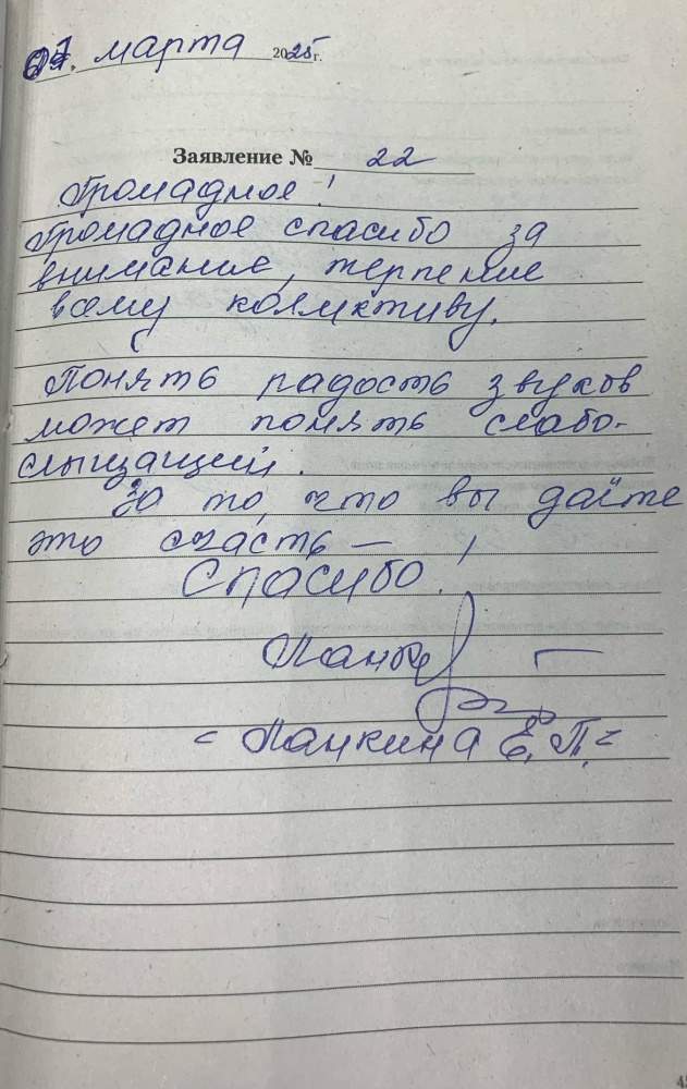 Громадное, громадное спасибо за внимание, терпение всему коллективу. Понять радость звуков может понять слабослышащий. За то, что вы даёте это счастье СПАСИБО! Ланкина Е.П.