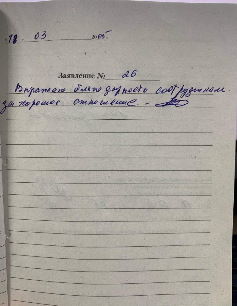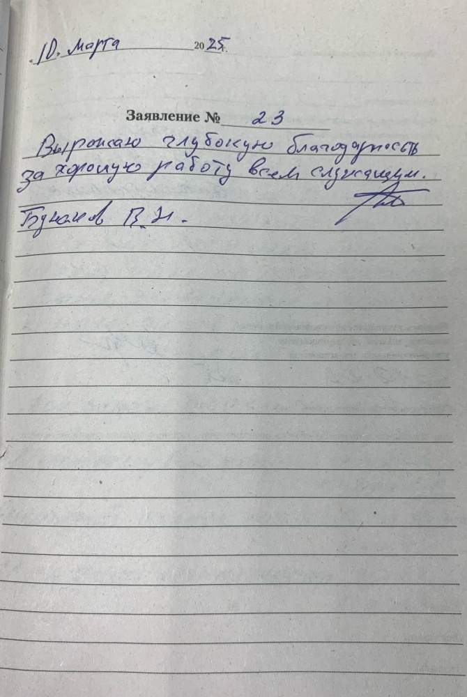 Выражаю глубокую благодарность за хорошую работу всем служащим. Бунаков В.Н.