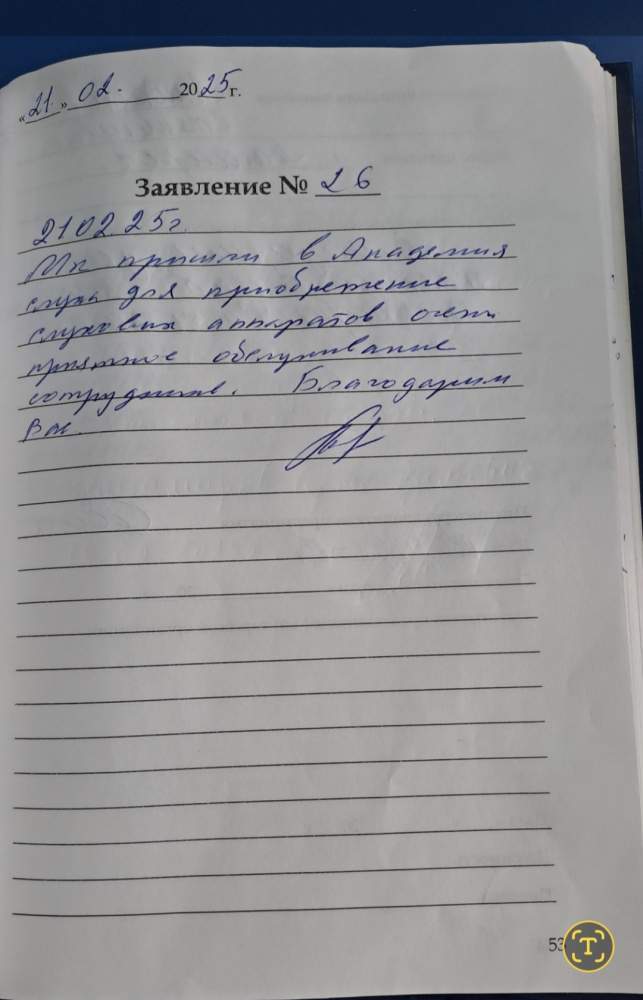 Мы пришли в Академию слуха для приобретения слуховых аппаратов, очень приятное обслуживание сотрудников. Благодарим Вас.