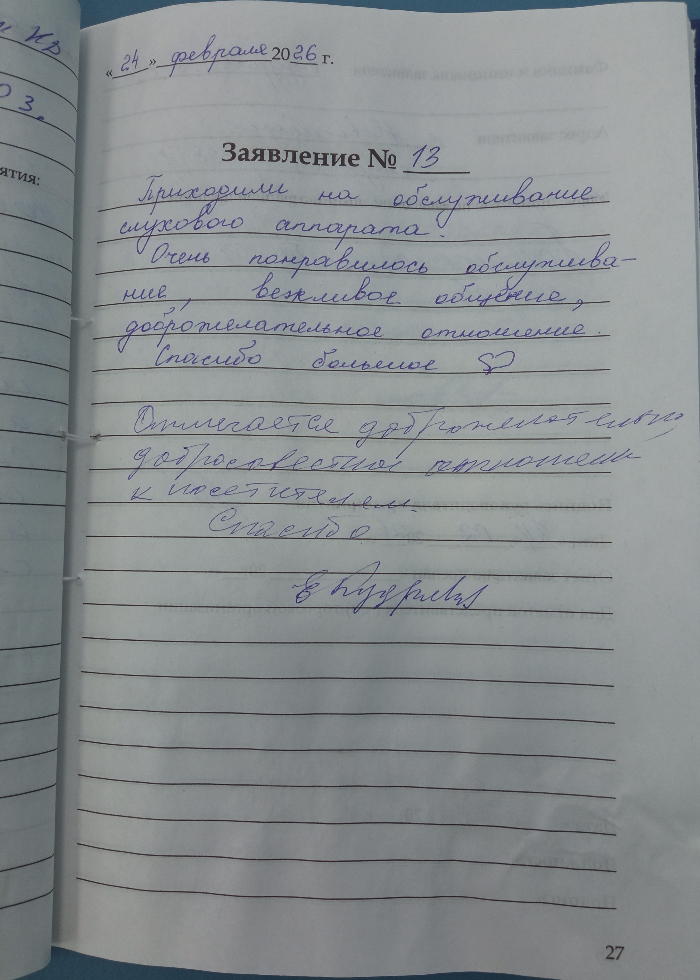 Благодарю за профессиональное обслуживание. Внимание и терпение. Мне очень понравилось обслуживание и индивидуальный подход. Спасибо огромное. Теперь мой любимый центр слуха.
