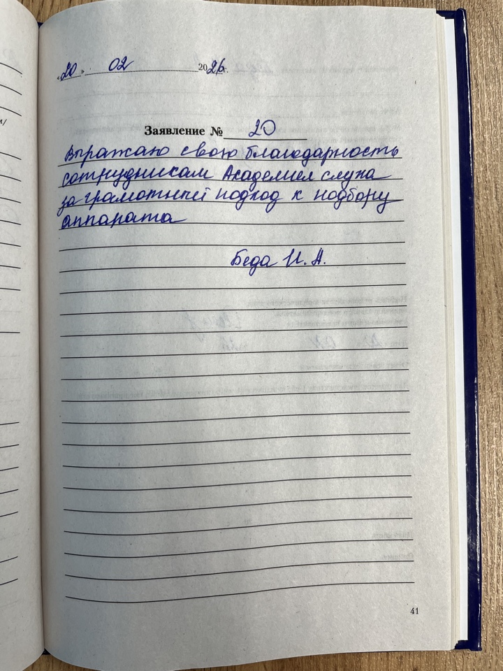 Выражаю свою благодарность сотрудникам Академии слуха за грамотный подход к подбору аппарата