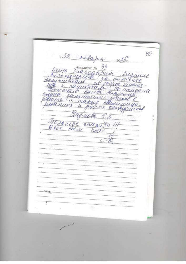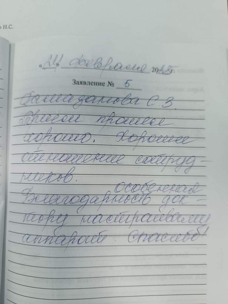 Рамазанова С.З Прием прошел хорошо. Хорошее отношение сотрудников. Особенная благодарность доктору настраивающий аппарат. Спасибо
