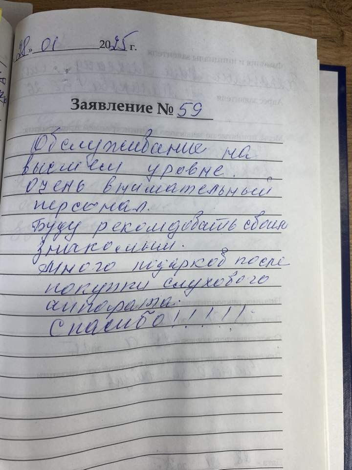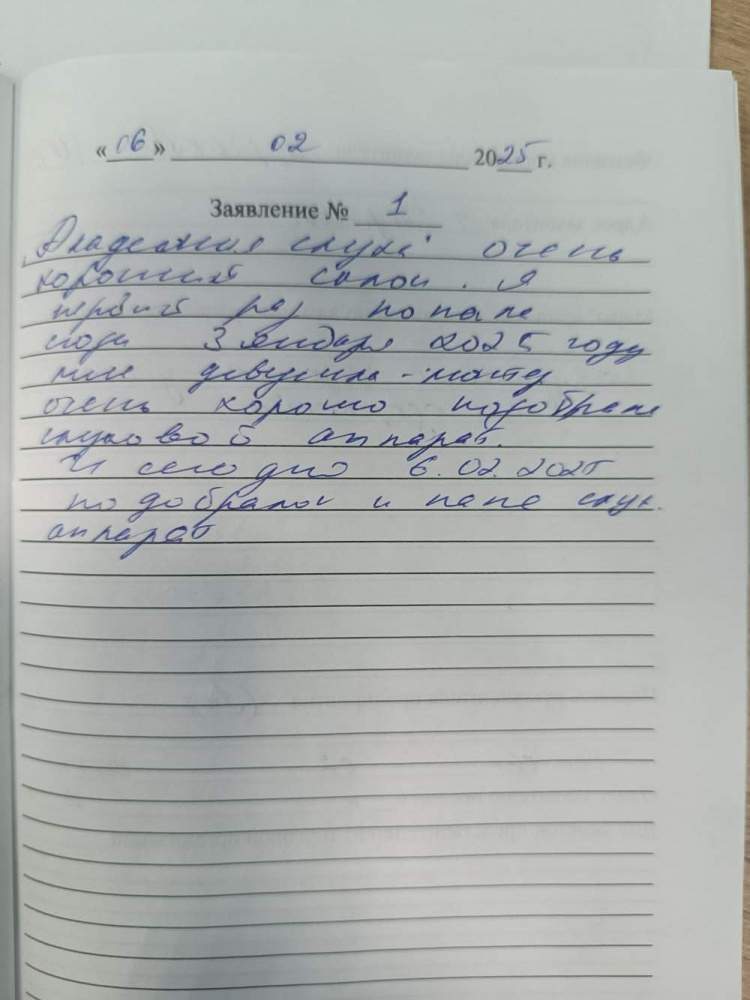 Большое спасибо грамотный подбор и натройку слуховых аппаратов.