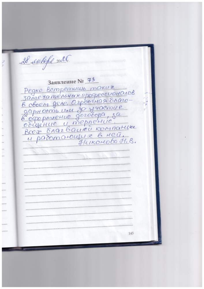Редко встретишь таких замечательных профессионалов в своем деле. Огромная благодарность им за участие в оформлении договора, за общение и терпение. Всех благ вашей компании и работающих в ней. Никонова Н.В