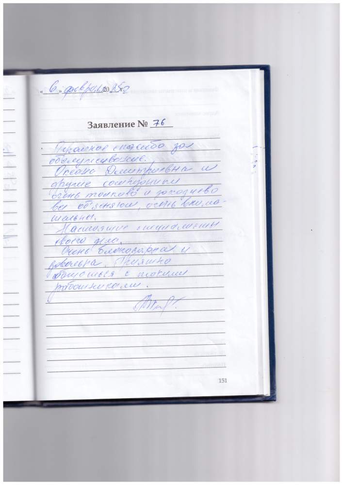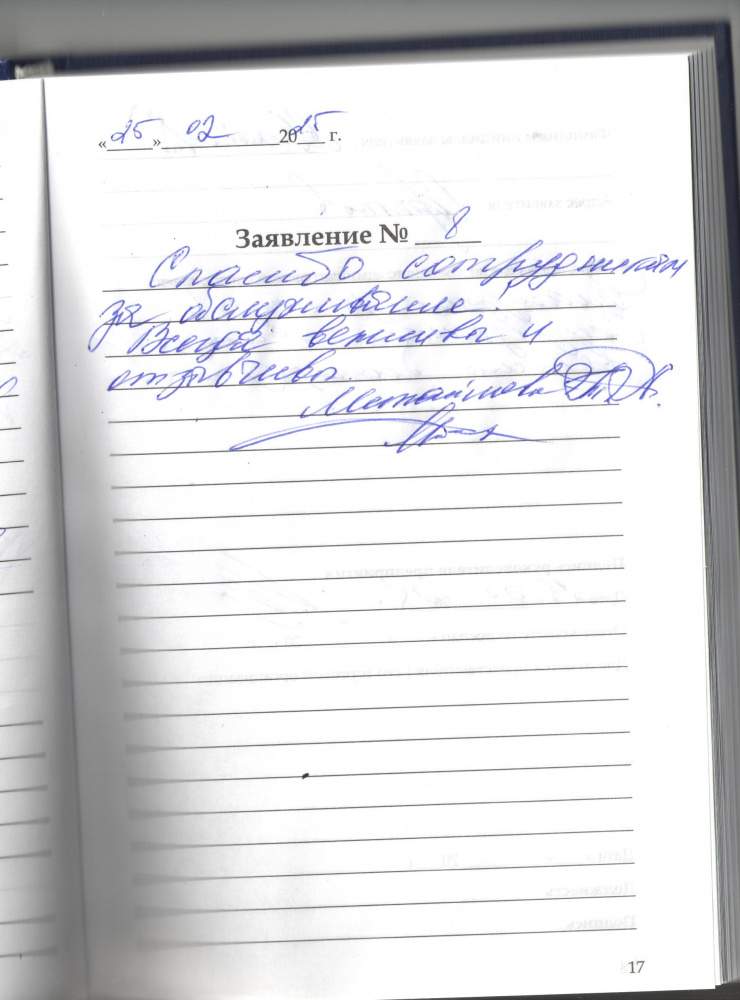 Огромное спасибо за обслуживание. Оксана Дмитриевна и другие сотрудники очень толково и доходчиво все объяснили, очень внимательны.