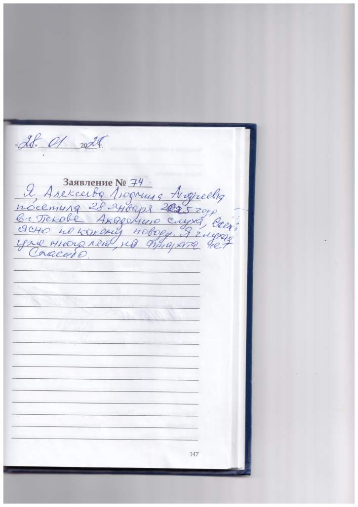 Я, Алексеева Людмила Андреевна посетила 28 января 2025 года в г. Пскове Академию слуха, всем ясно по какому поводу. Я глухая много лет, но аппарата нет. Спасибо.