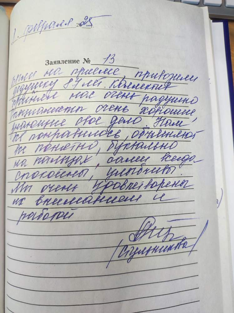 Были на приеме,привозили дедушку 87 лет.Коллектив принял нас очень радушно.Специалисты очень хорошие,знающие свое дело.Нам все понравилось.объяснят все понятно,буквально на пальцах,сами всегда спокойны,улыбчивы. Мы очень удовлетворены их вниманием и работой.