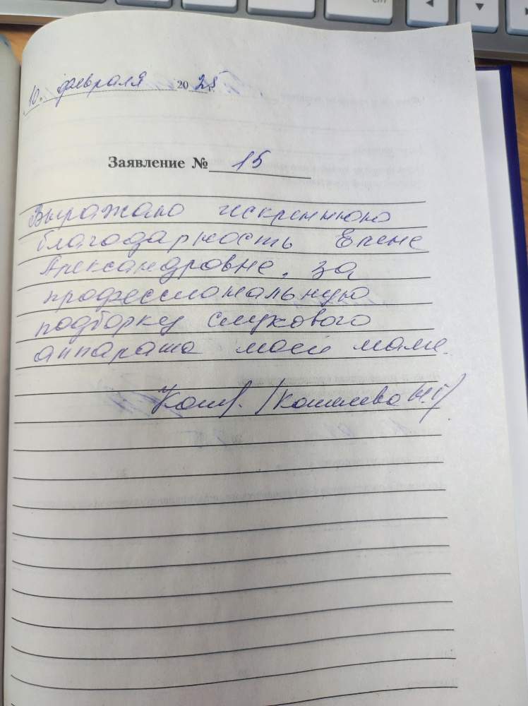 Выражаю искреннюю благодарность Елене Александровне,за профессиональную подборку слухового аппарата моей маме.