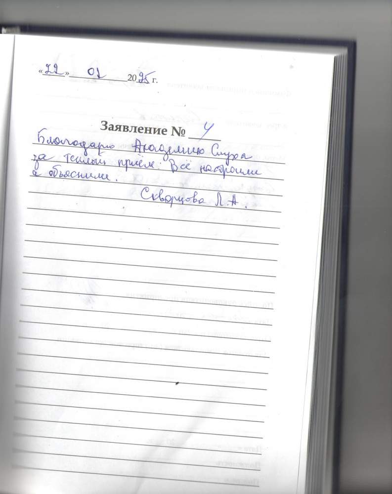 Была на приёме по проверке слухового аппарата.Хочу выразить благодарность коллективу "Академии Слуха",особенно Жанне Эдуардовне за вежливое отношение, за отзывчивость к каждому вопросу.Желаю здоровья и процветания.