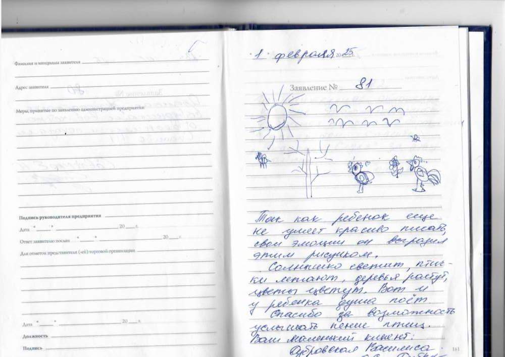 Так как ребенок еще не умеет красиво писать, свои эмоции он выразил этим рисунком. Солнышко светит, птички летают, деревья растут, цветы цветут, вот и у ребенка душа поет, Спасибо за возможность услышать пение птиц. Ваш маленький клиент.