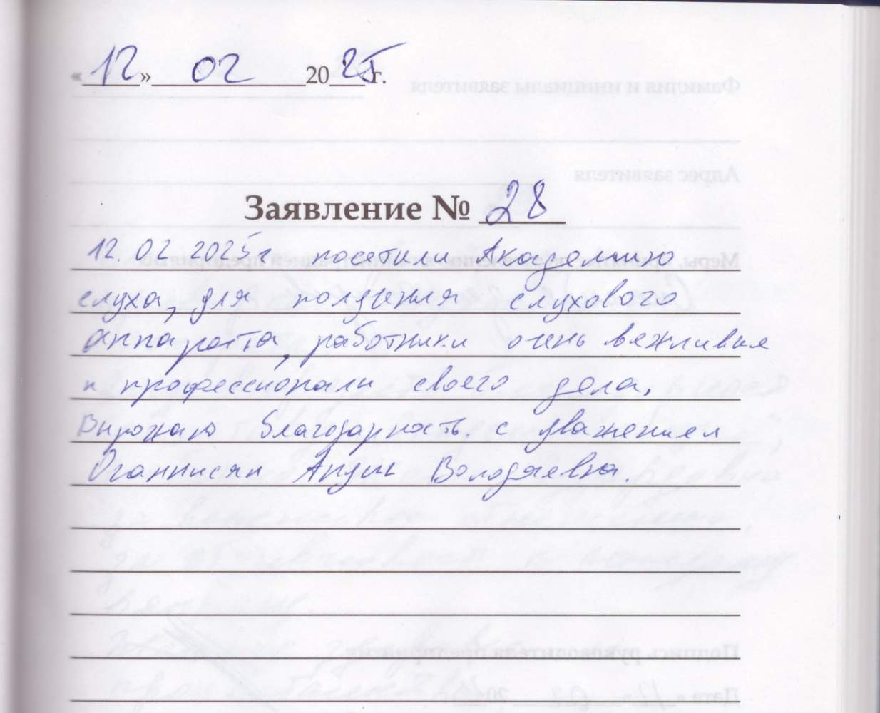 12.02.2025 посетили "Академию Слуха", для получения слухового аппарата,работники очень вежливые и профессионалы своего дела.Выражаю благодарность .С уважением Оганнисян Ануш Володяевна