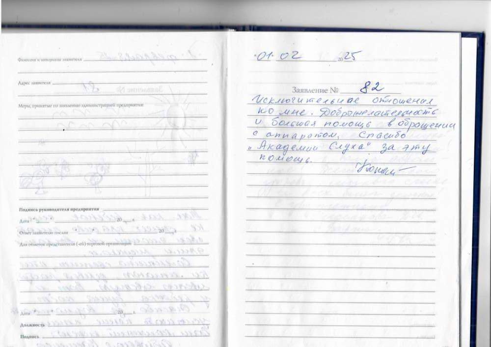Исключительное отношение ко мне. Доброжелательность и большая помощь в обращении с аппаратом, спасибо Академии слуха за эту помощь