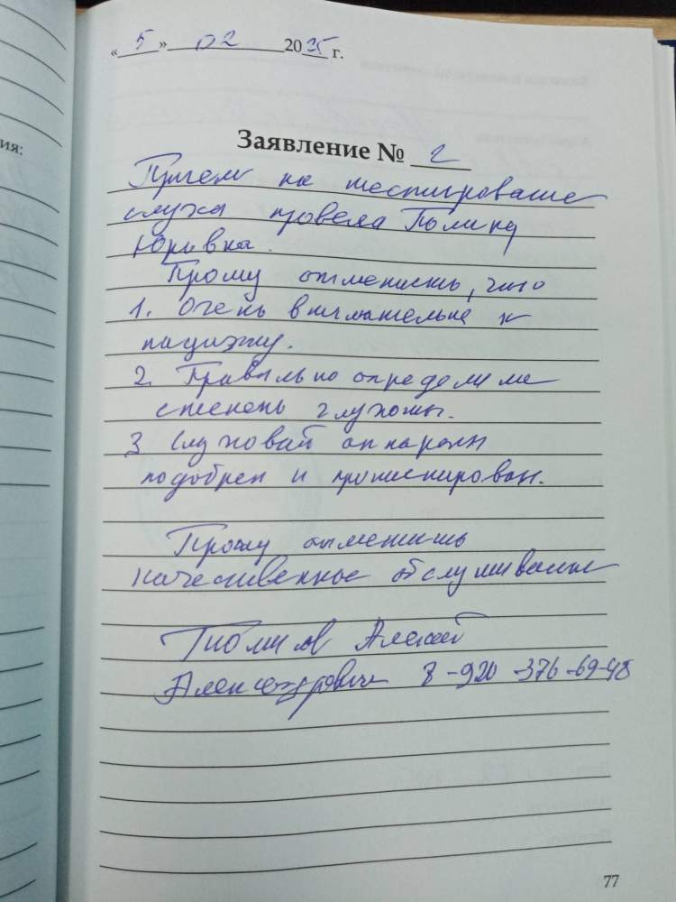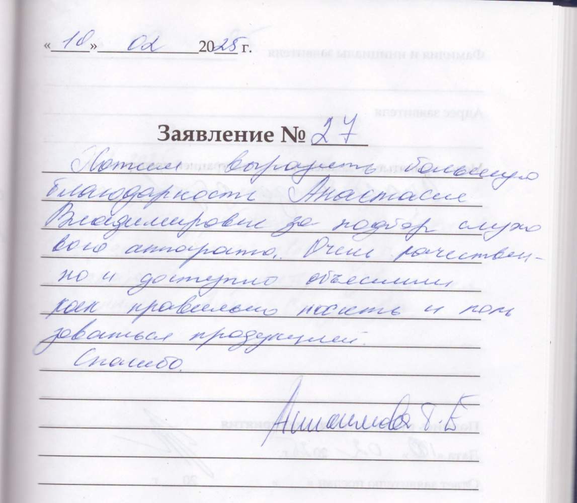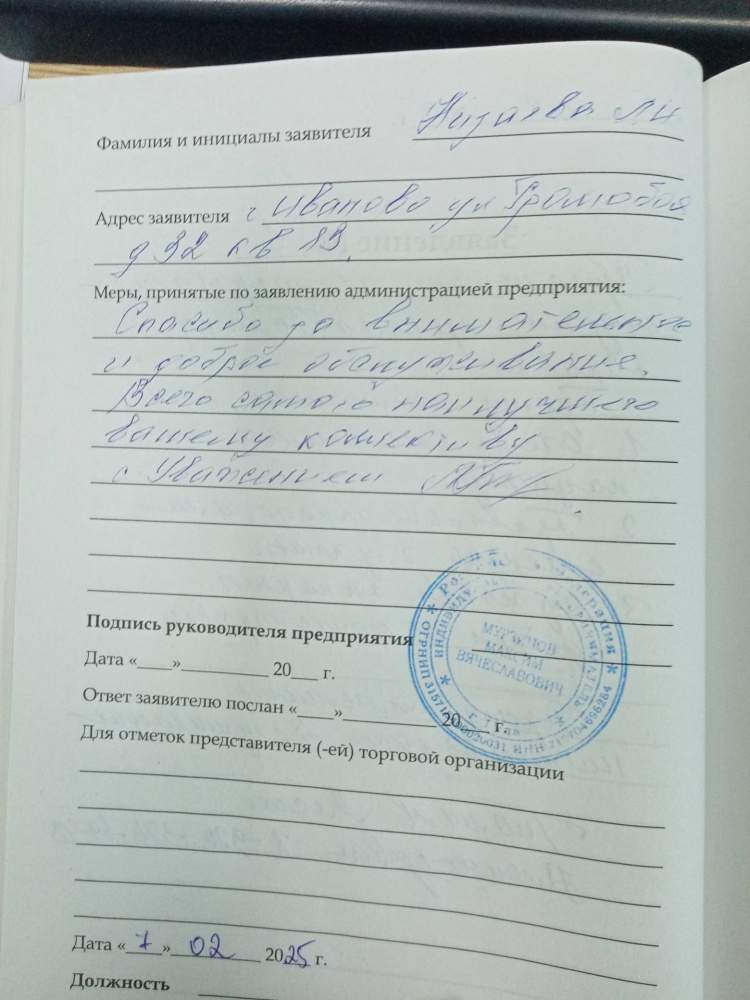 Прошу отметить качественное обслуживание. Томилов Алексей