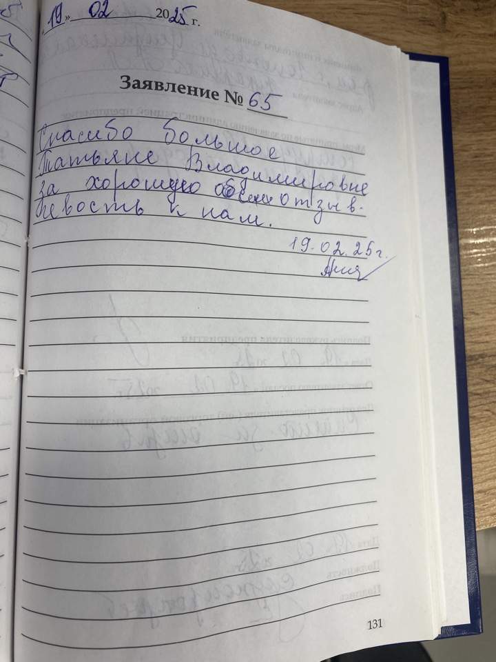 Спасибо сотрудникам, что помогли мне починить индивидуальный вкладыш. Очень благодарна вам за помощь.