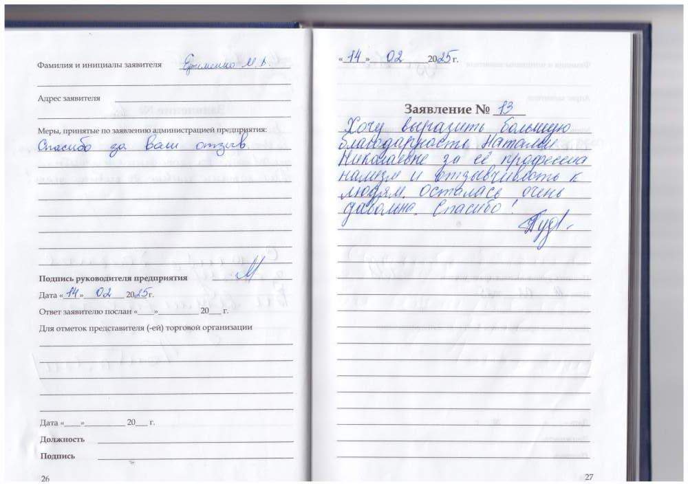 Хочу выразить большую благодарность Наталье Николаевне за ее профессионализм и отзывчивость к людям. Осталась очень довольна. Спасибо!