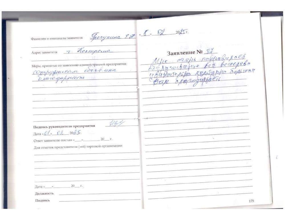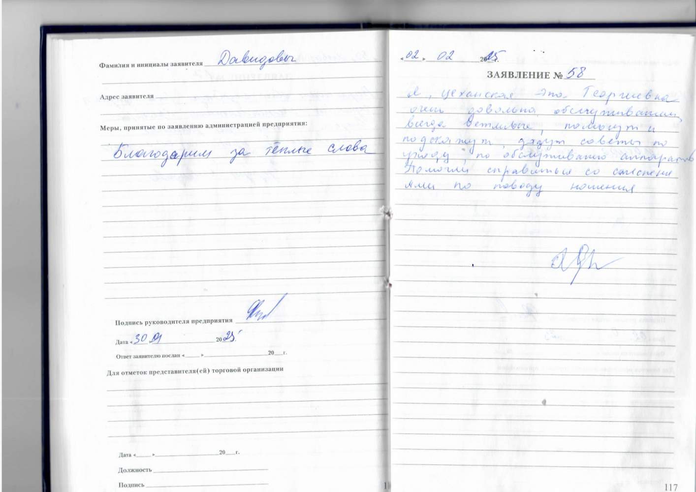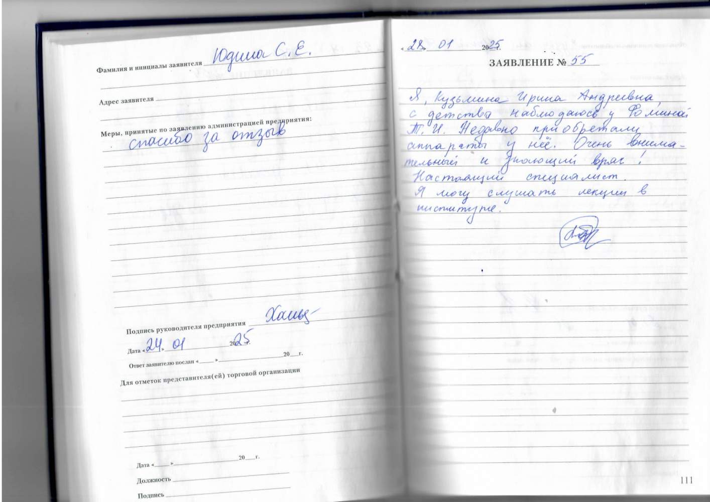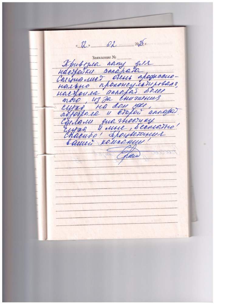 Я, Гречухина Е.Н., выражаю огромную благодарность сотрудникам, которые помогли мне настроить мои аппараты и грамотно объяснили каким образом их содержать.