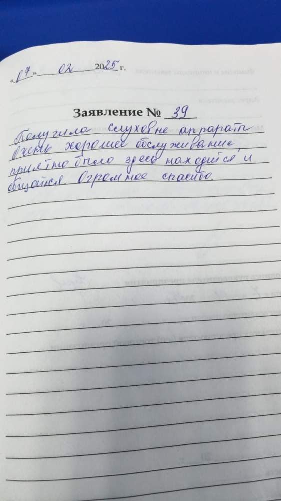 Получила слуховые аппараты. Очень хорошее обслуживание, приятно было здесь находиться и общаться. Огромное спасибо.