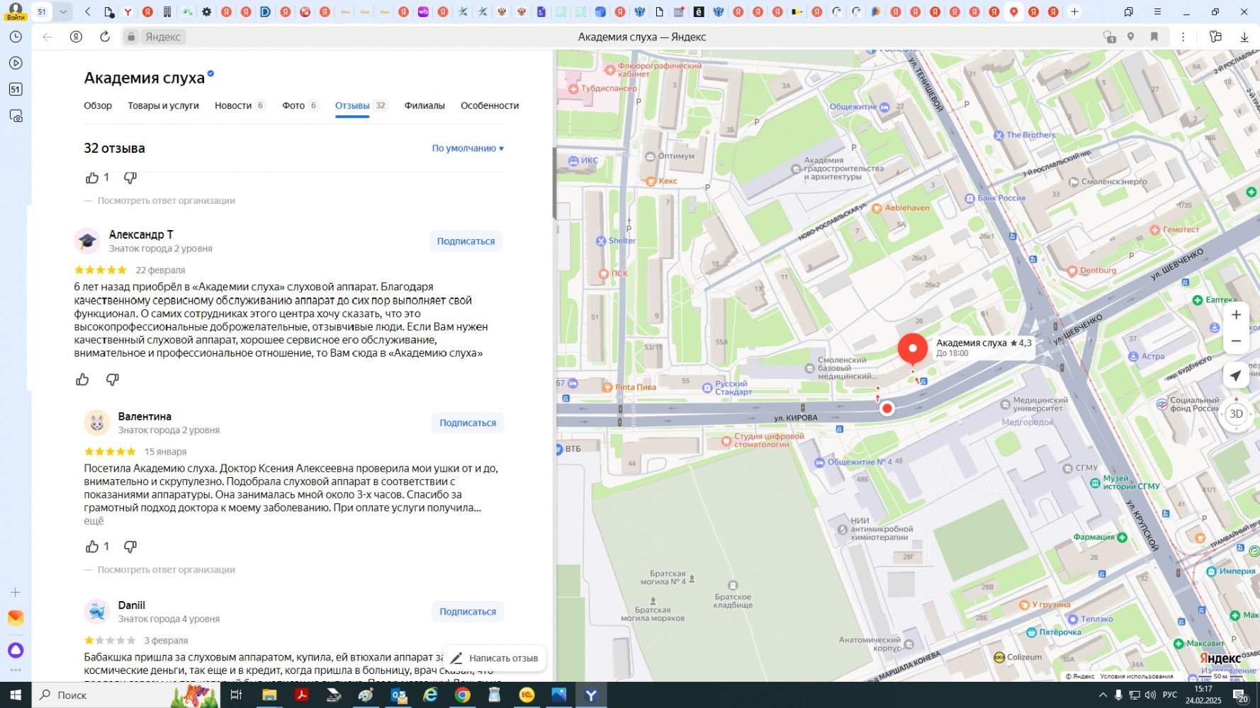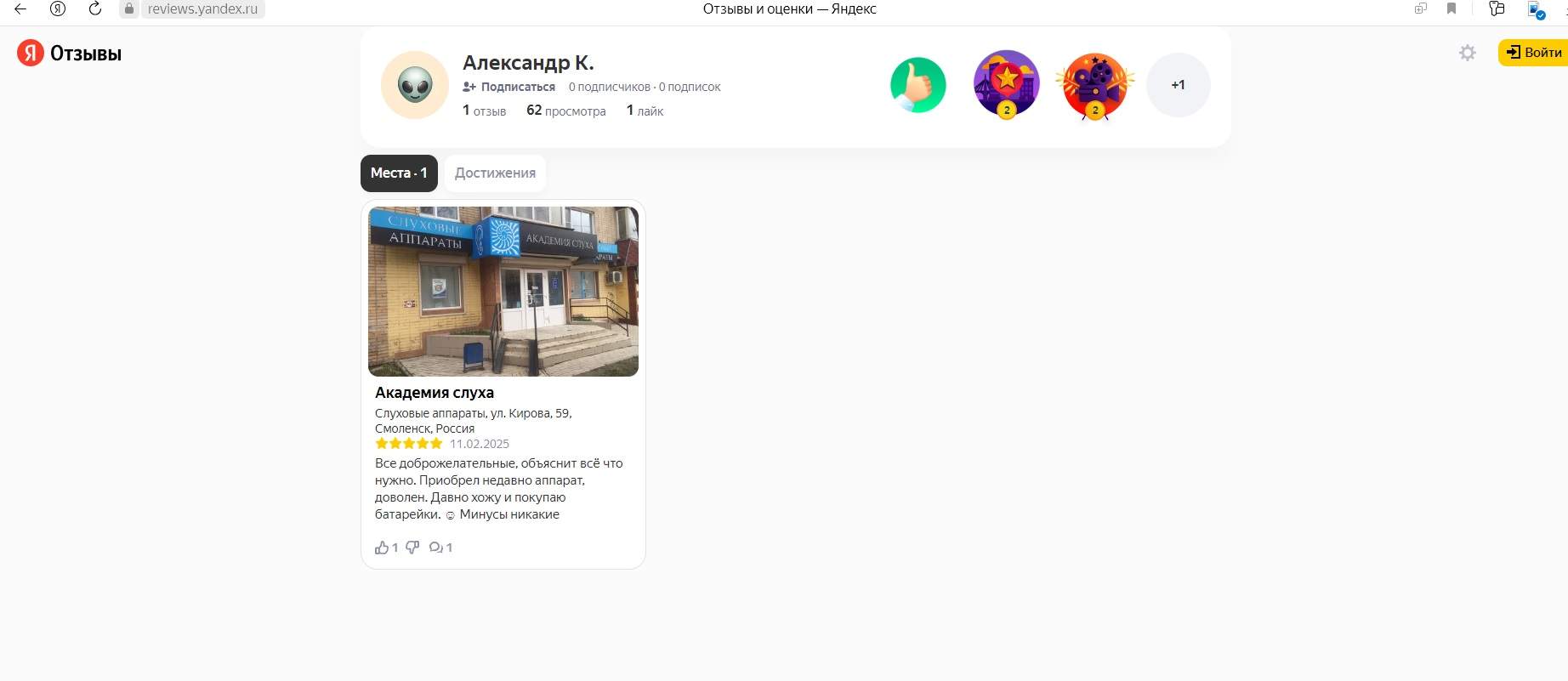 6 лет назад приобрёл в «Академии слуха» слуховой аппарат. Благодаря качественному сервисному обслуживанию аппарат до сих пор выполняет свой функционал. О самих сотрудниках этого центра хочу сказать, что это высокопрофессиональные доброжелательные, отзывчивые люди. Если Вам нужен качественный слуховой аппарат, хорошее сервисное его обслуживание, внимательное и профессиональное отношение, то Вам сюда в «Академию слуха»