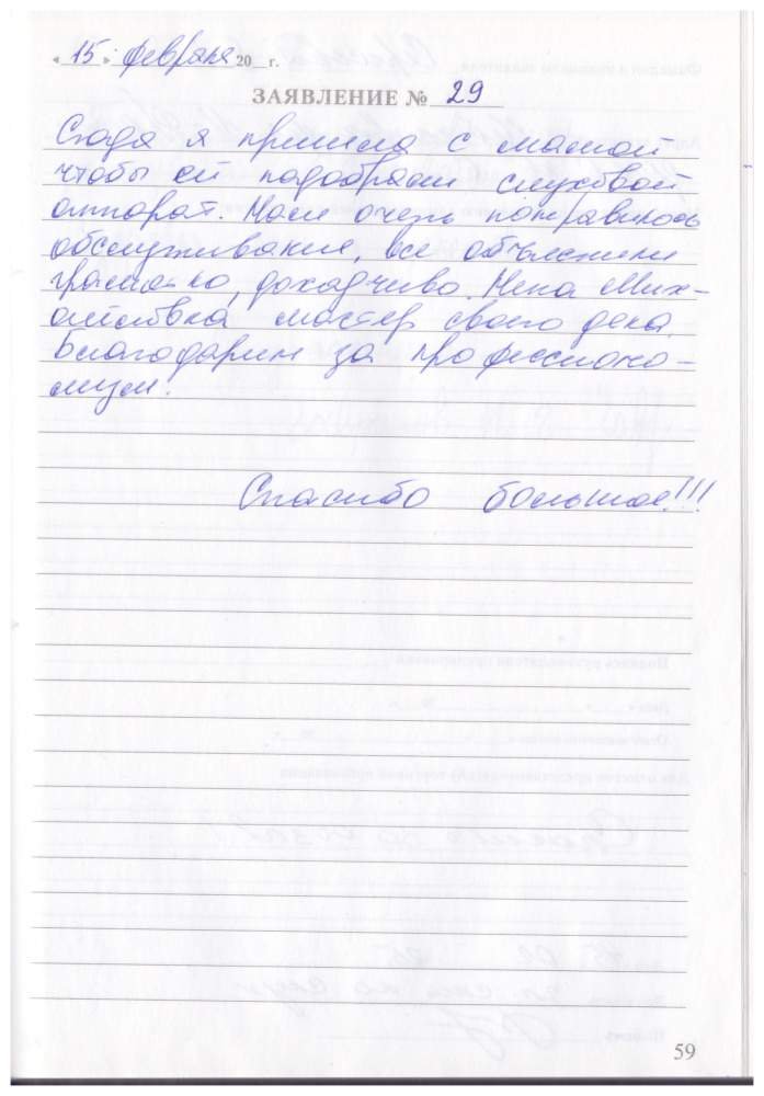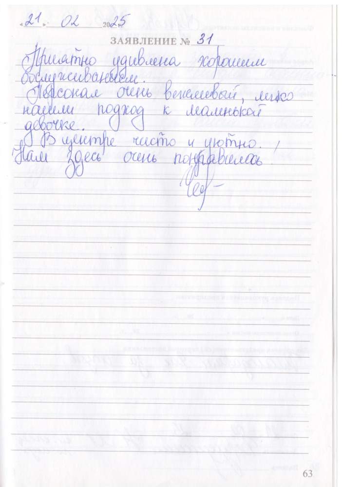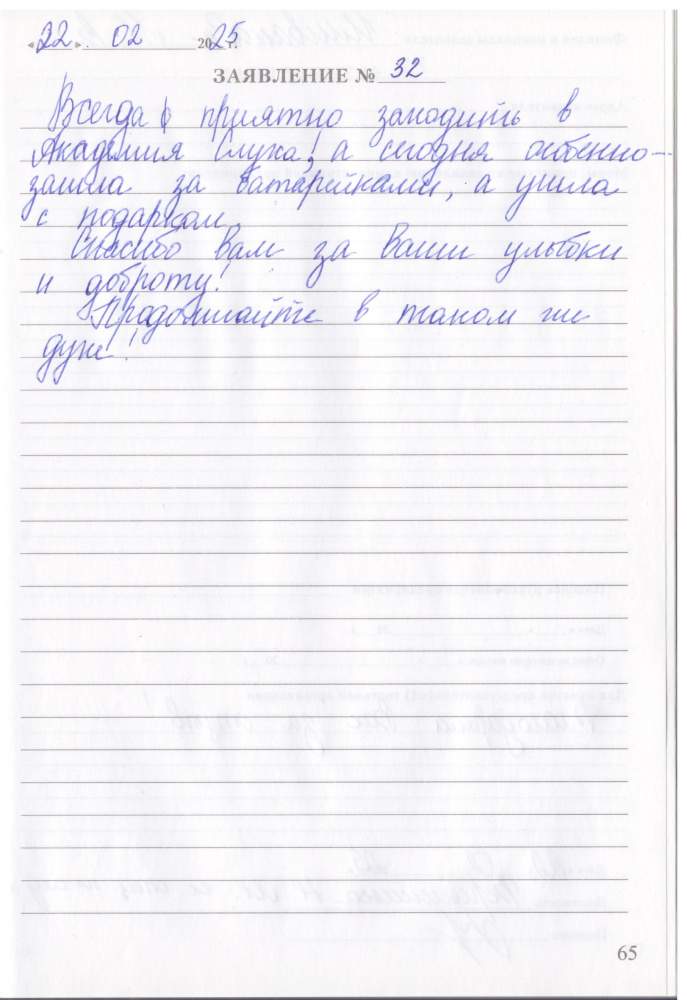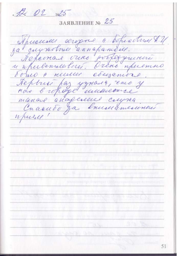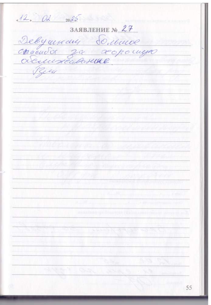 Спасибо большое за обслуживание. Чисто, светло, вежливо.