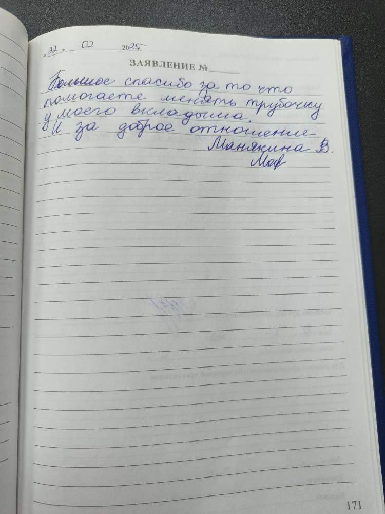 Большое спасибо за то что помогаете менять трубочку у моего вкладыша. И за доброе отношение.