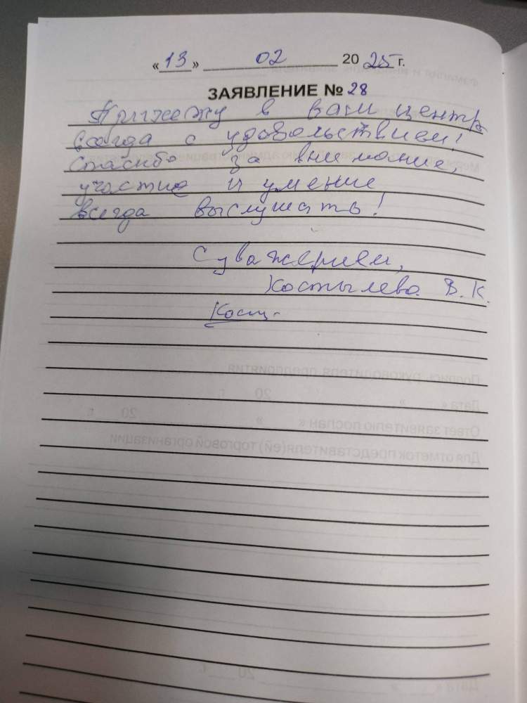Прихожу в ваш центр всегда с удовольствием! Спасибо за участие, внимание и умение всегда выслушать.