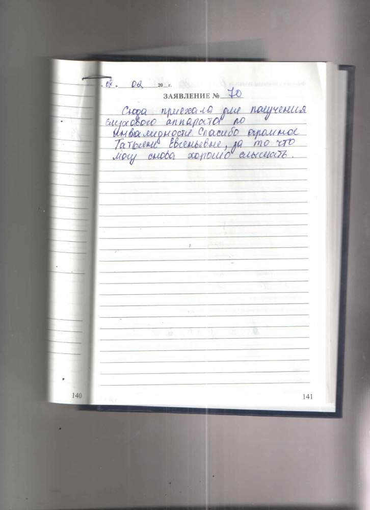 Сюда приехала для получения слухового аппарата по инвалидности. Спасибо огромное Татьяне Евгеньевне, за то что могу снова хорошо слышать.