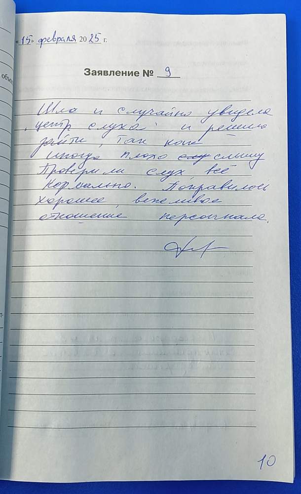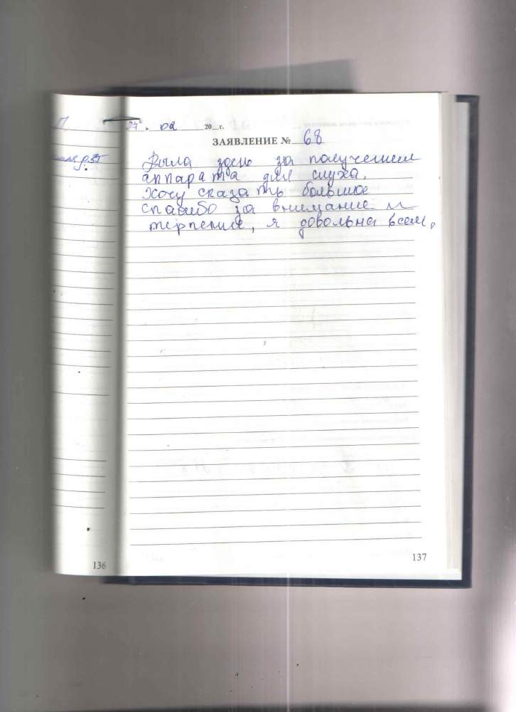 Была здесь за получением аппарата для слуха. Хочу сказать большое спасибо за внимание и терпение, я довольна всем.