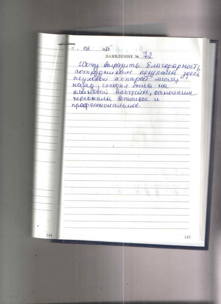 Хочу выразить благодарность сотрудникам покупала здесь слуховой аппарат месяц назад, сегодня была на плановой настройке, отношение персонала вежливое и профессиональное