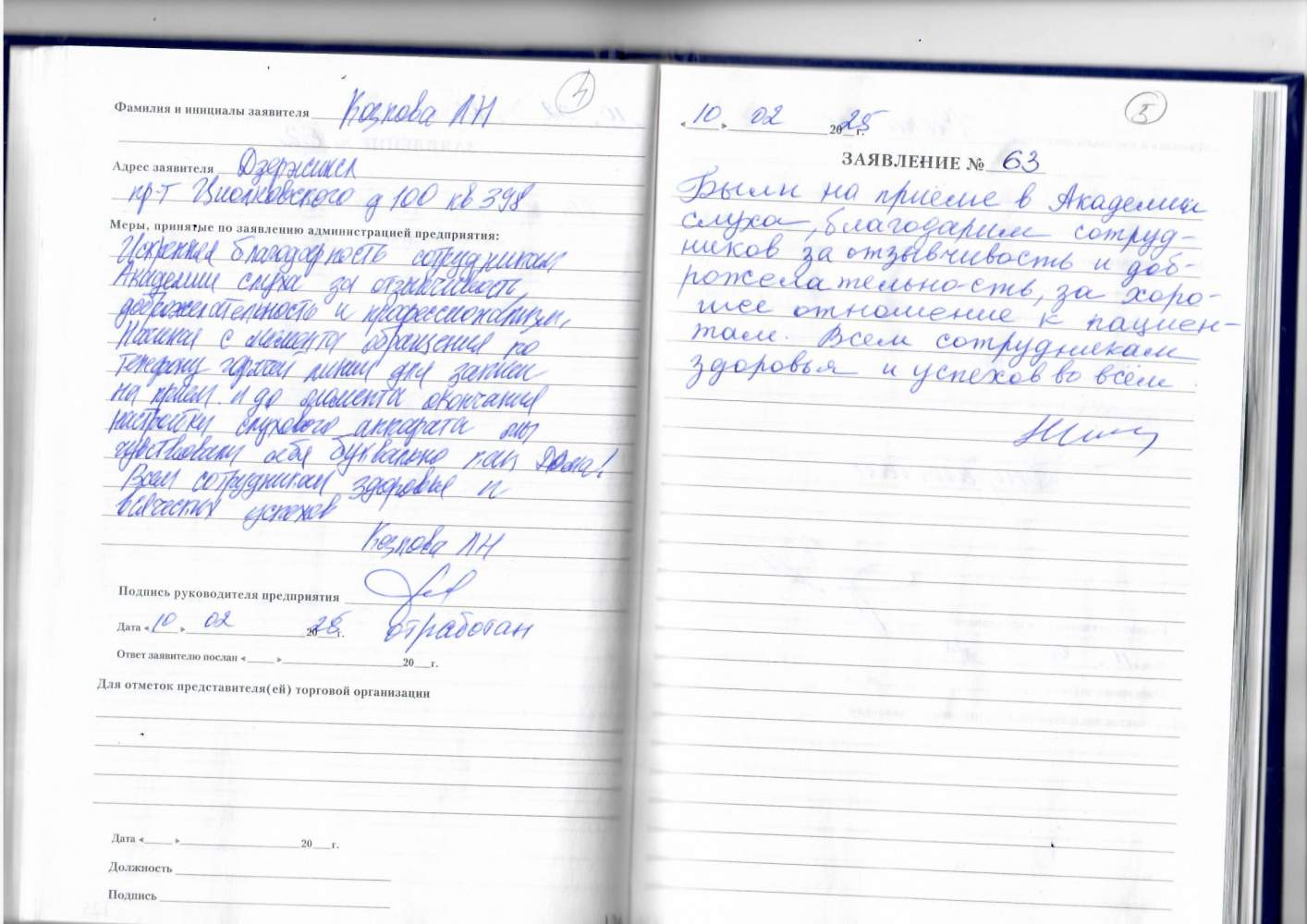 Хочу выразить благодарность по работе сотрудниц "Академии слуха" за отличную, грамотную работу и чуткое отношение к своим клиентам.