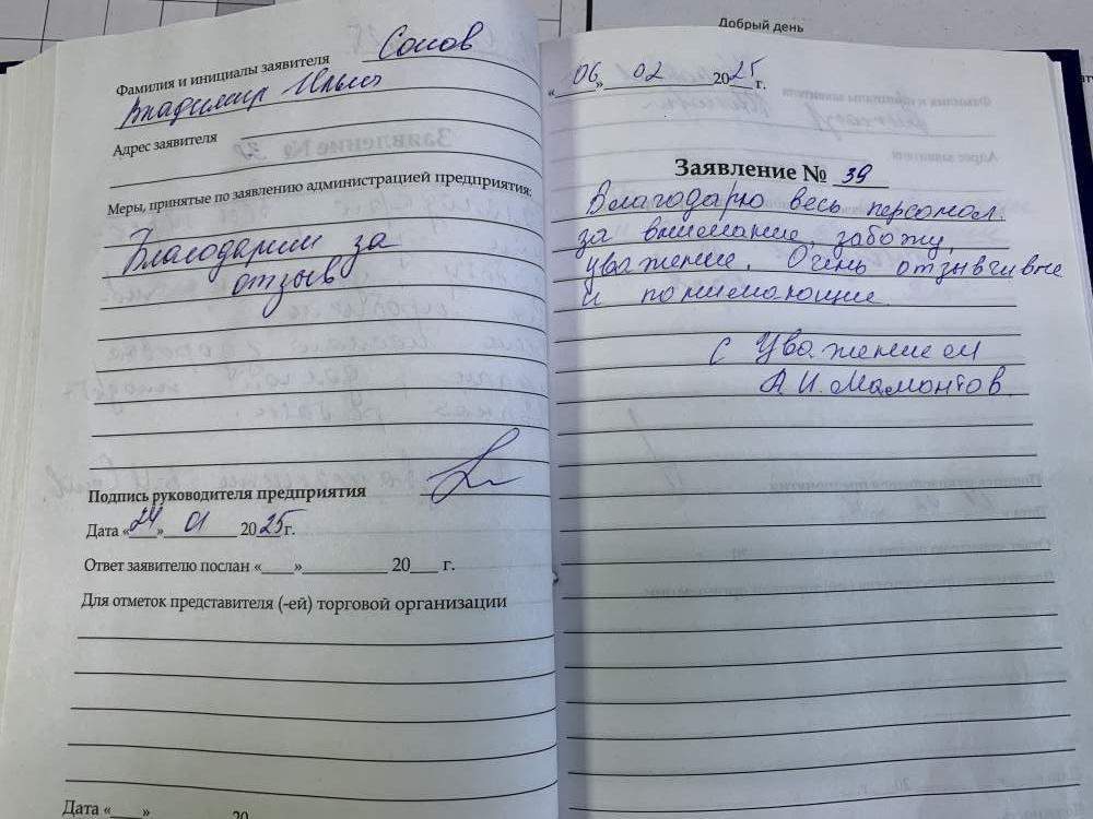 Благодарю весь персонал за внимание, заботу, уважение. Очень отзывчивые и понимающие. С уважением А.И. Мамонтов.