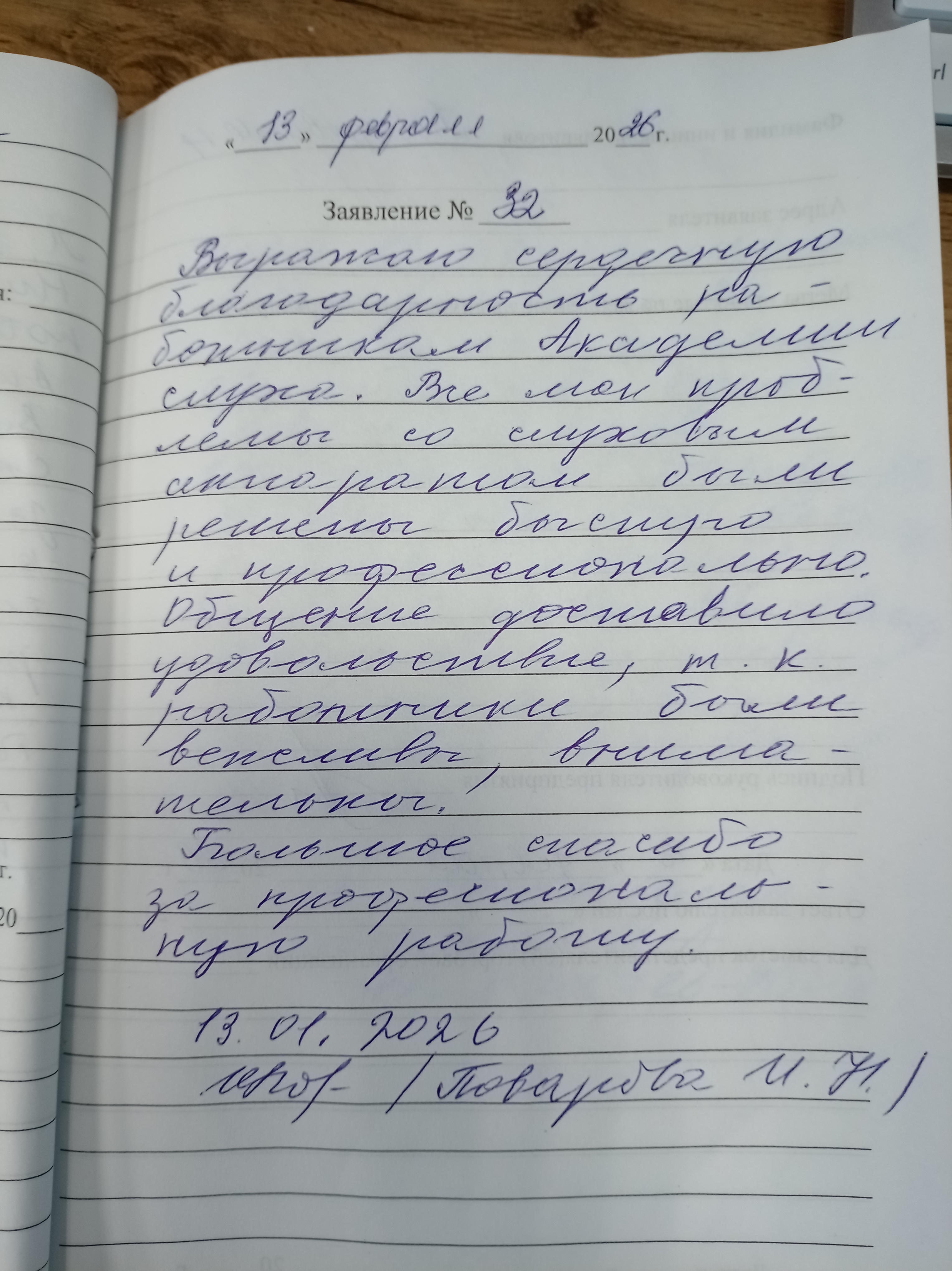 Выражаю сердечную благодарность работникам Академии Слуха. Все мои проблемы со слуховым аппаратом были решены быстро и профессионально Общение доставило удовольствие, т.к. работники были вежливы,внимательны. Большое спасибо за профессиональную работу.