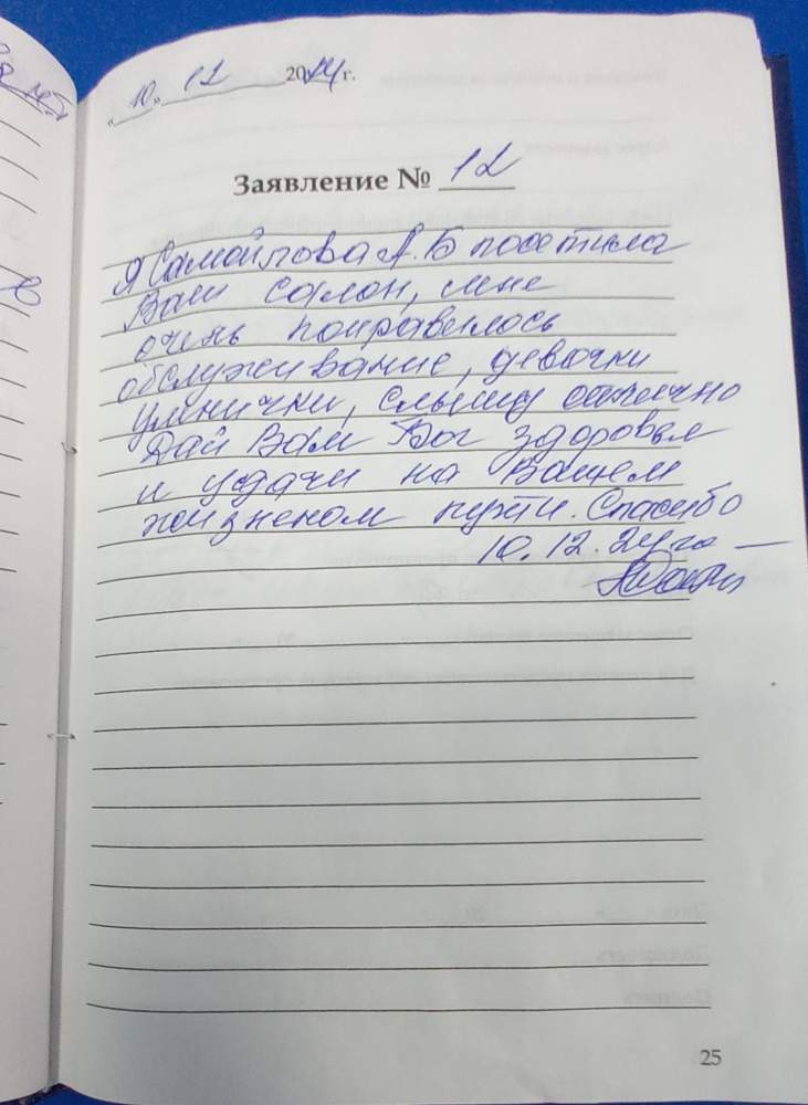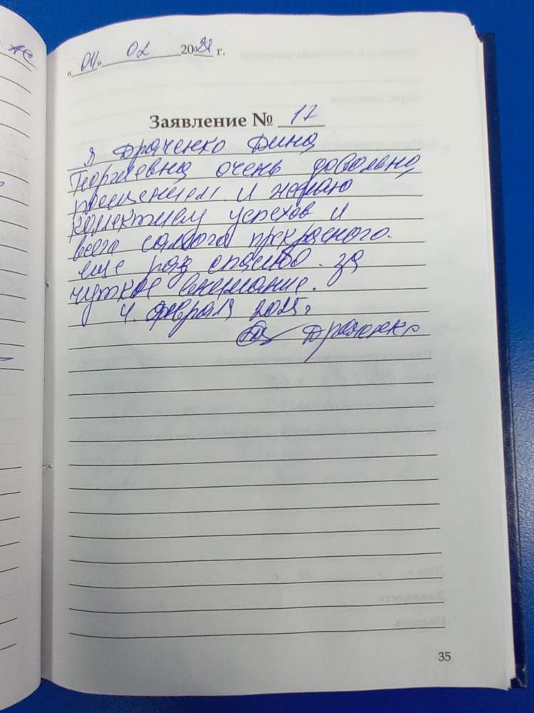 Я, Драченко Дина Георгиевна, очень довольна посещением и желаю коллективу успехов и всего самого прекрасного, еще раз спасибо за чуткое внимание.