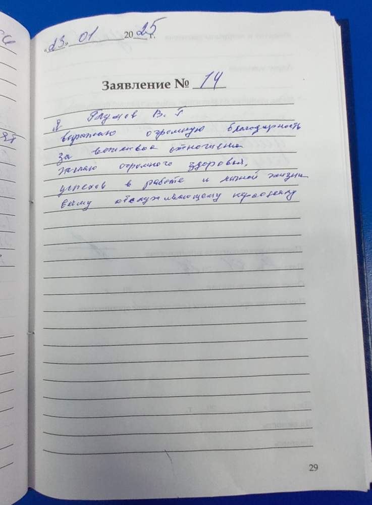 Я, Глумов Василий Григорьевич, выражаю огромную благодарность за вежливое отношение. Желаю огромного здоровья успехов в работе и личной жизни всему обслуживающему персоналу.
