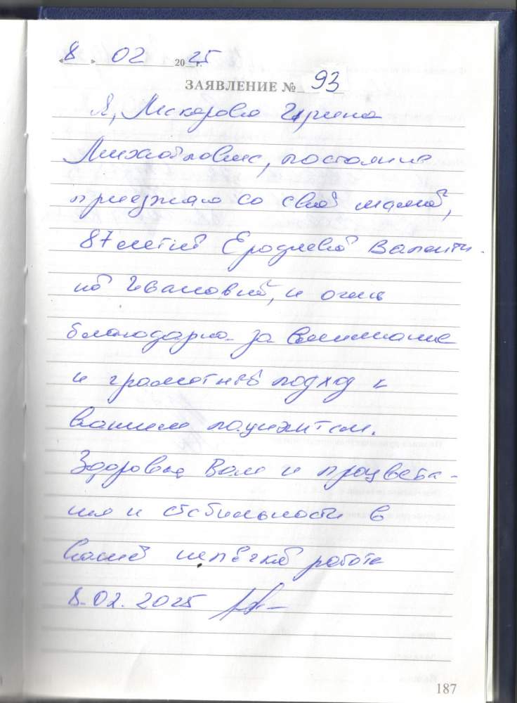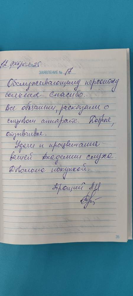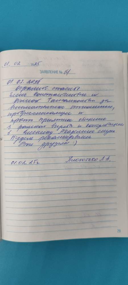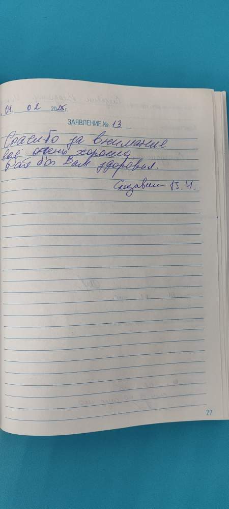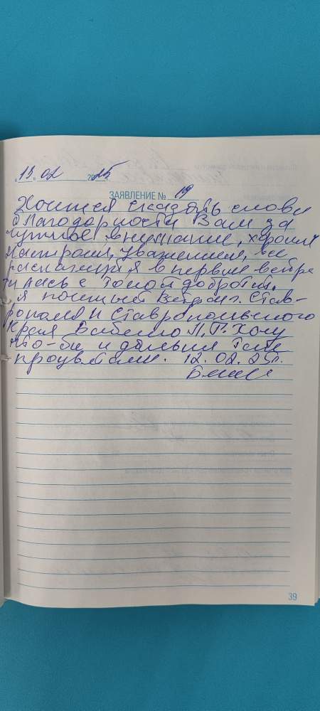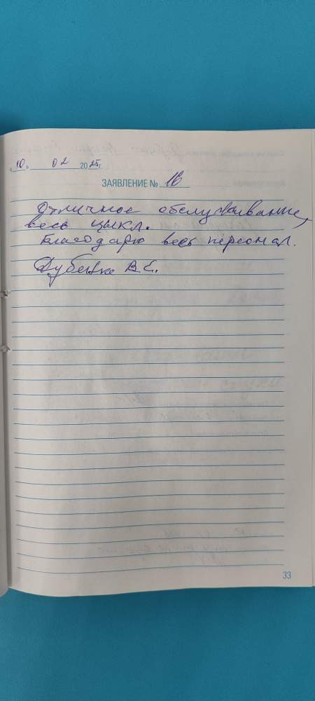 Хочется сказать слова благодарности Вам за чуткое внимание, хорошим настроением, уважением, все рассказали, я впервые встретилась с такой добротой. Я почетный ветеран Ставрополя и Ставропольского края Бабенко Л.Т. Хочу чтобы и дальше Вам процветания. 12.02.25г.