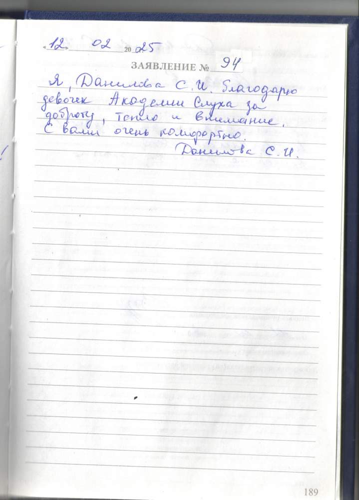 Я, Данилова С.И., благодарю девочек Академии Слуха за доброту, тепло и внимание. С Вами очень комфортно