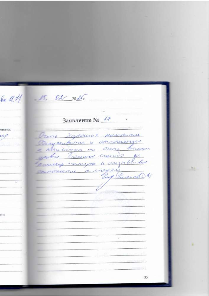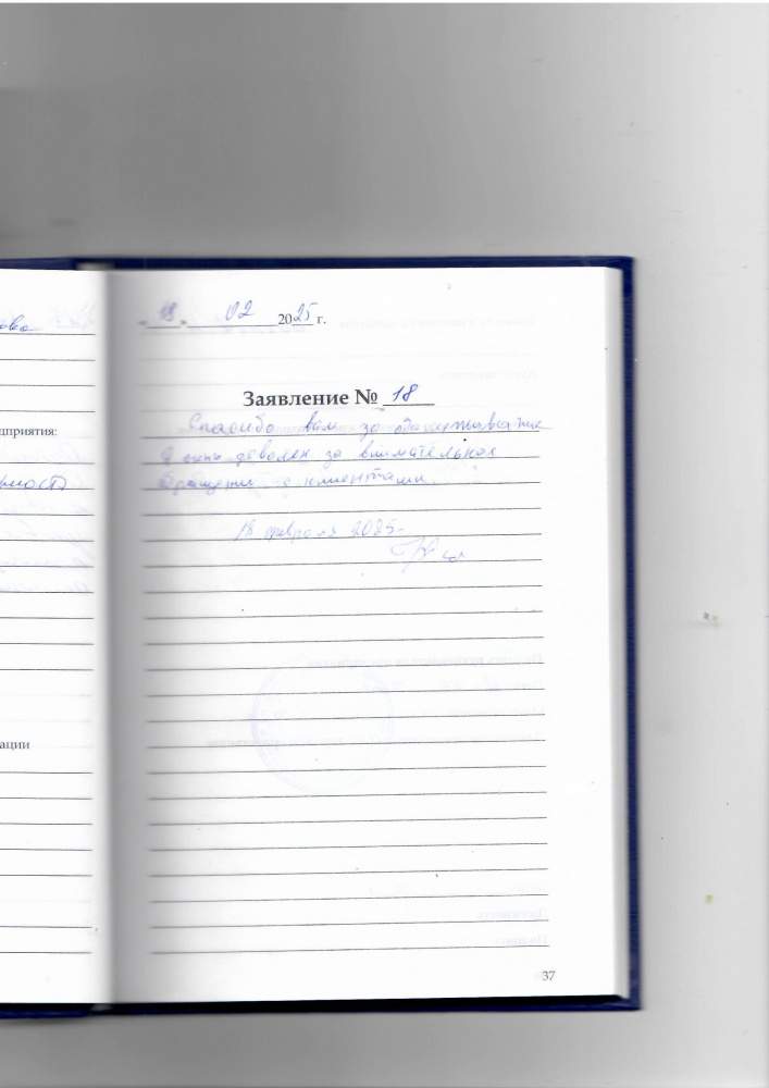 Спасибо вам за обслуживание. Я очень доволен за внимательное обращение с клиентами