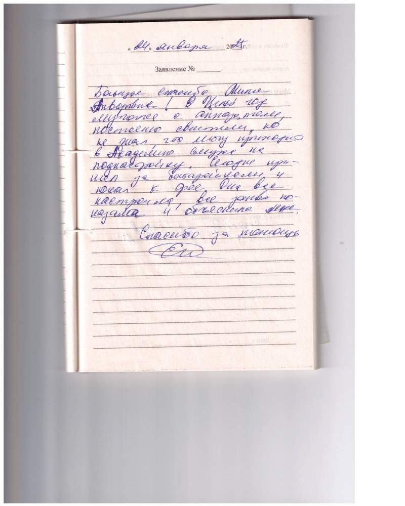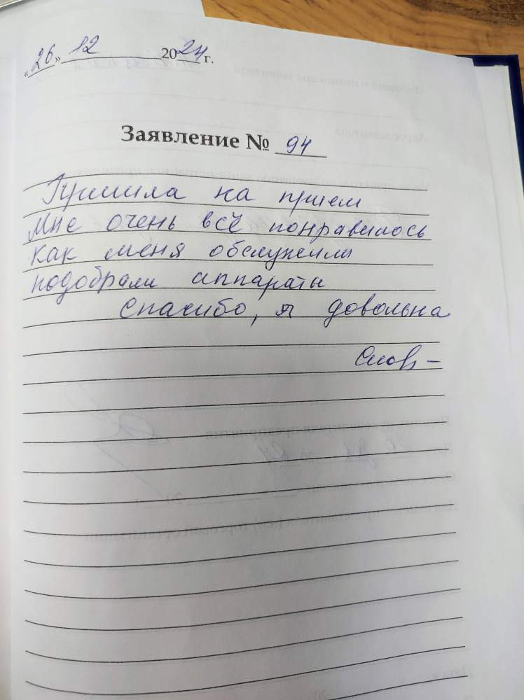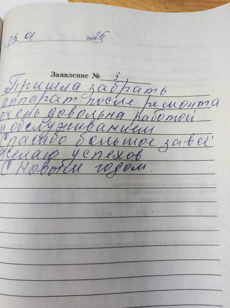 Пришла забрать аппараты после ремонта,очень довольна работой и обслуживанием.Спасибо большое за все.Желаю успехов.