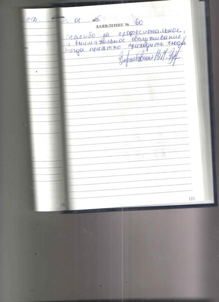 Спасибо за профессиональное и внимательное обслуживание.Всегда приятно приходить сюда.Зарембовская В,П,