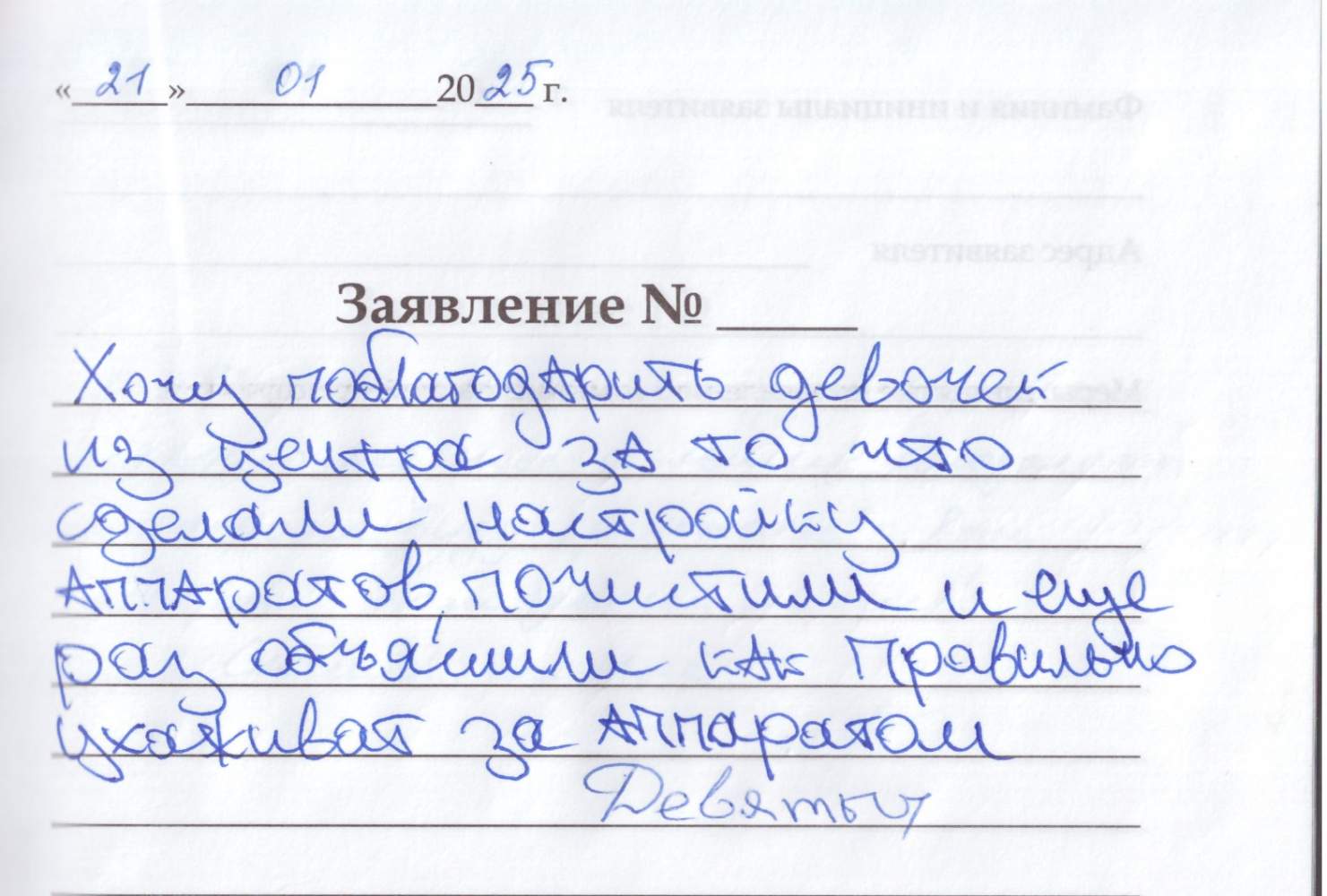 Хочу поблагодарить девочек из центра за то что сделали настройку аппаратов, почистили и еще раз объяснили как правильно ухаживать за аппаратом.