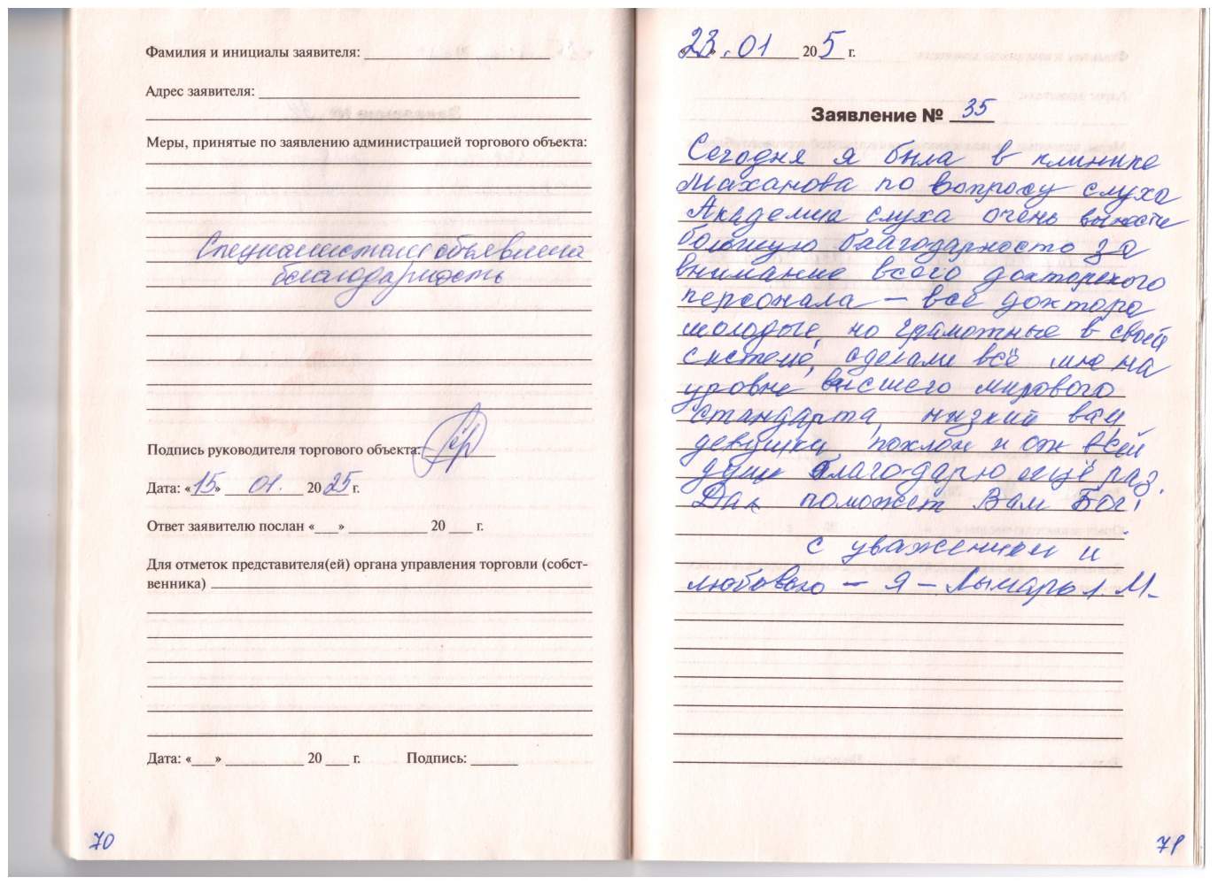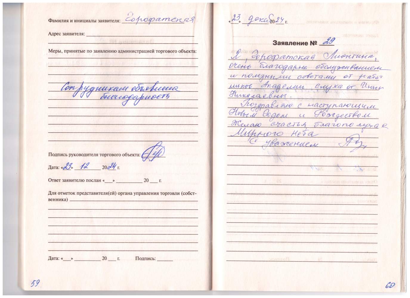 Я, Горофатская Лионтина, очень благодарна обслуживанием и полезными советами от работников Академии слуха от Инны Николаевны. Поздравляю с наступающим Новым годом и Рождеством. Желаю счастья, благополучия, мирного неба. С уважением.
